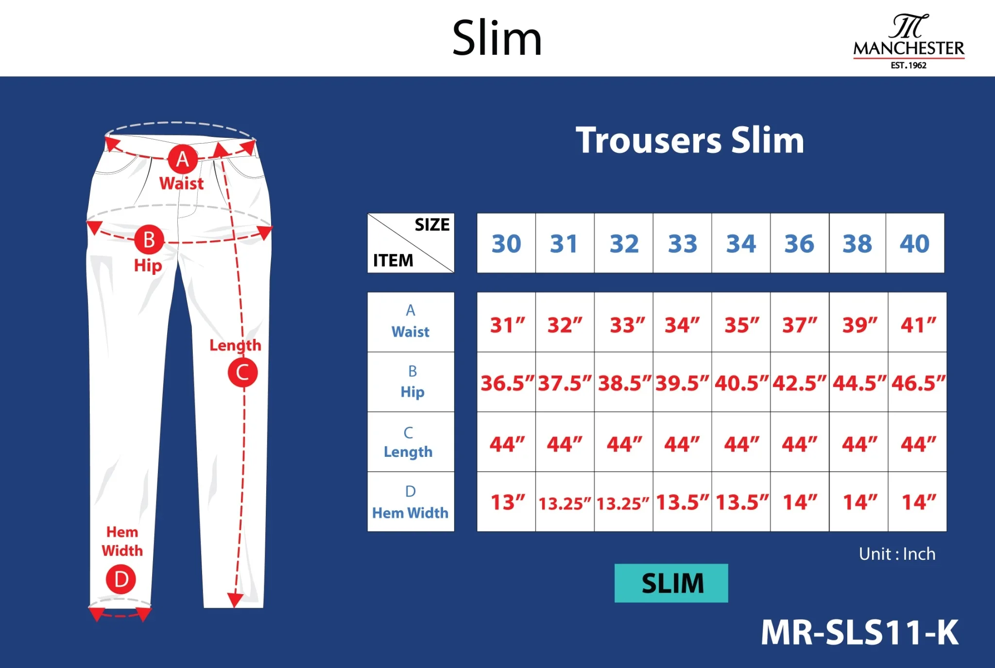 | A Waist (Inch) | 31 | 33 | 35 | 37 | 39 |