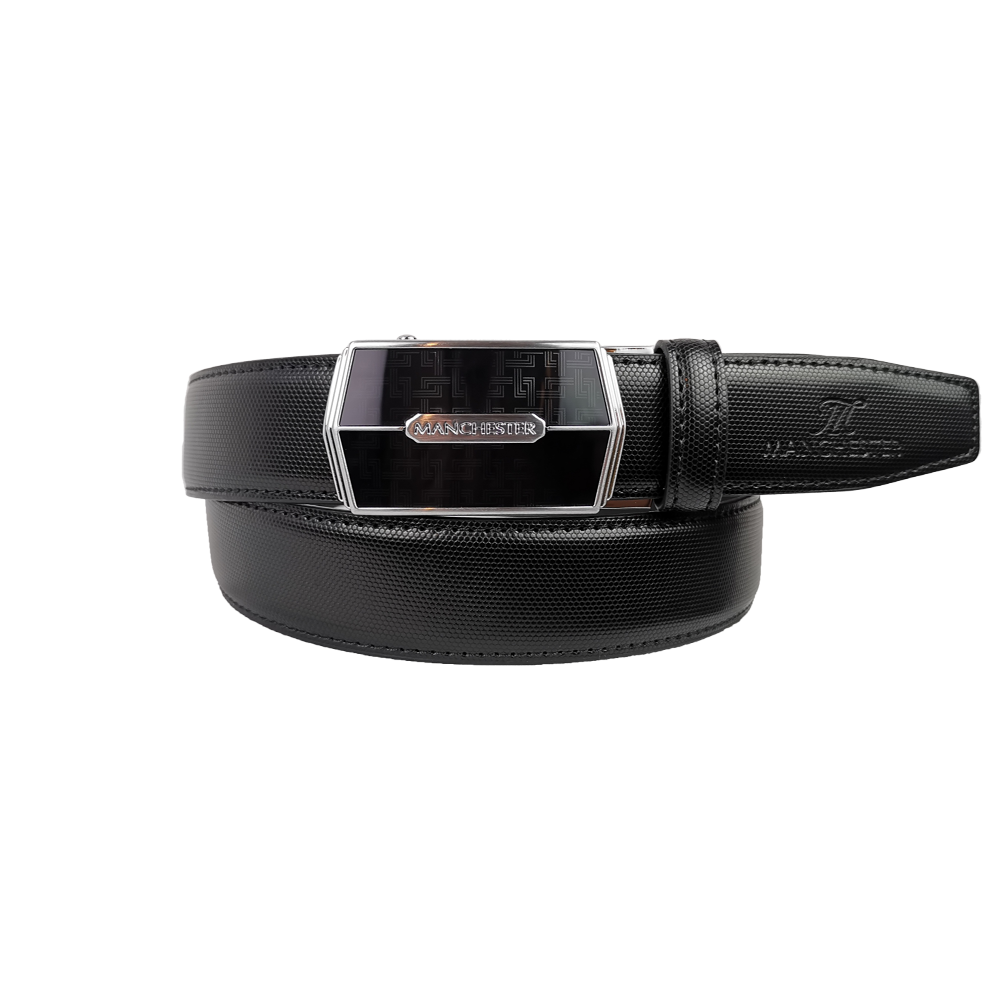 เข็มขัด หัวล็อก เงินเงา หนังเรียบ ดำ